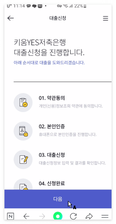 저축은행으로 넘어가서 다음 단계가 이루어짐이 아래에서 볼 수 있듯이 알 수 있습니다