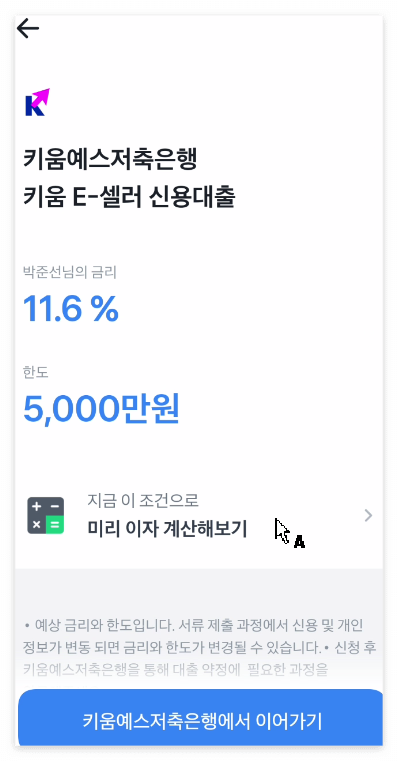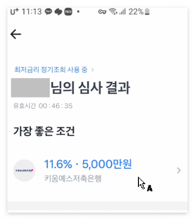 11%에 5천만 원이 가장 좋은 조건이기에 그 과정을 조금이나마 보여 드리기 위해서 선택해 봅니다
