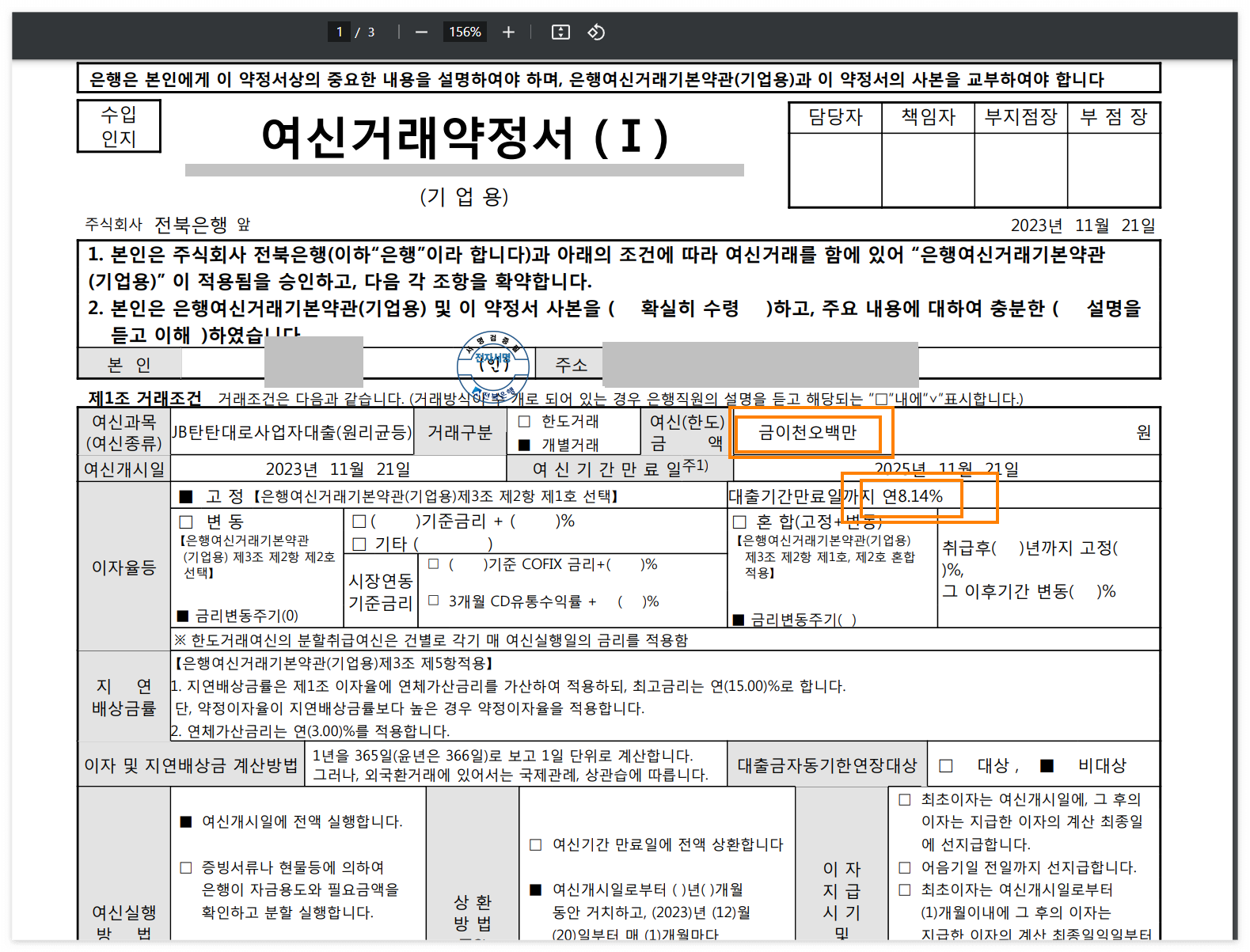 못 믿어 하실 분들이 계셔서 제가 받은 여신 거래 약정서를 아래와 같이 보여 드립니다