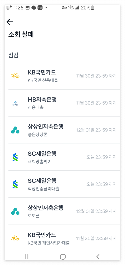 하지만 저게 다 아닌 것이 아래쪽을 내려보면 조회에 실패했다면서 점검 중이라는 안내가 뜹니다