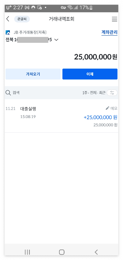 그리고 계속 대출을 한번 진행해 봤는데 결국 실행이 돼서 입금이 되더라고요