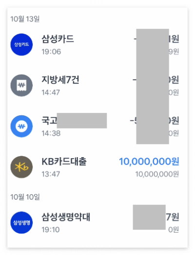 아래와 같이 한 달 전에 이미 받았던 천만 원의 대출이 또 있었습니다
