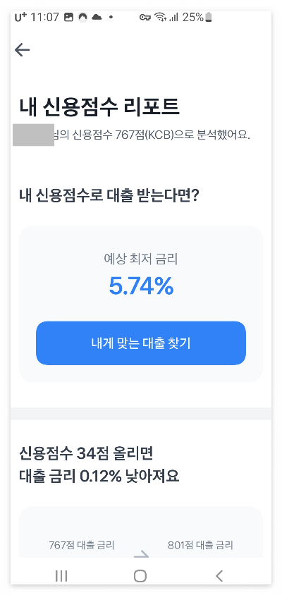 저는 대출 상품을 비교해 보기로 하고 조회를 해도 신용 점수가 떨어지지 않는 안내를 보고 비교해 보기로 하였습니다