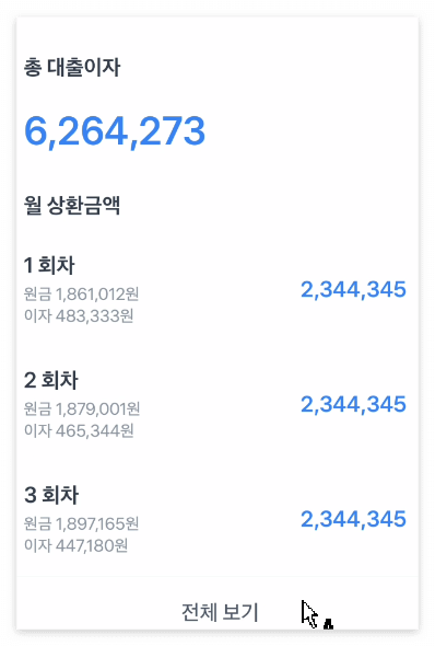 진행하게 되면 이자가 얼마가 붙게 되고 회차별로 어떻게 이루어졌는지도 알 수 있습니다