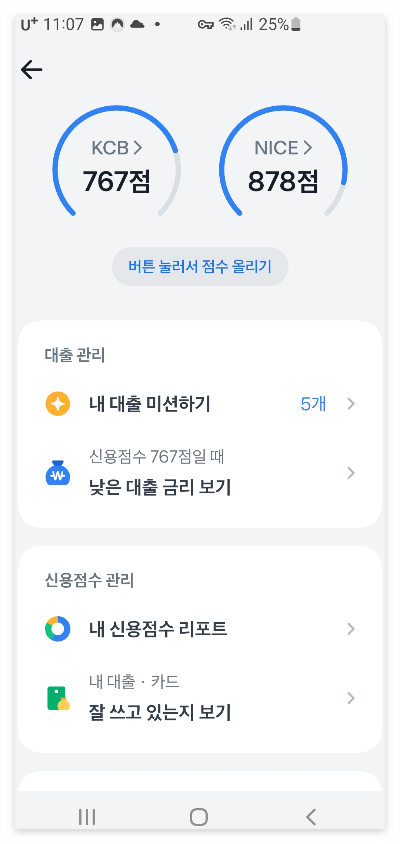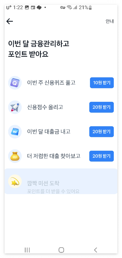 토스에서는 아래와 같이 신용 점수를 끌어 올리는 미션을 제시하고 있습니다