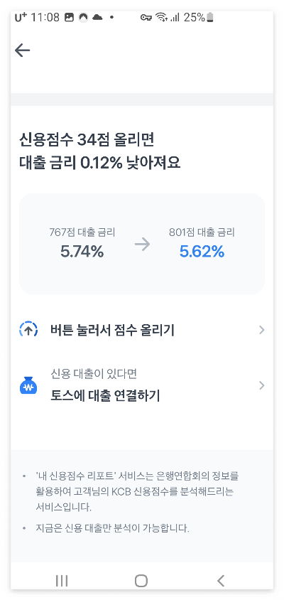 그래서 토스에서만 집중적으로 계속 대출 상품 조회를 해 보았습니다