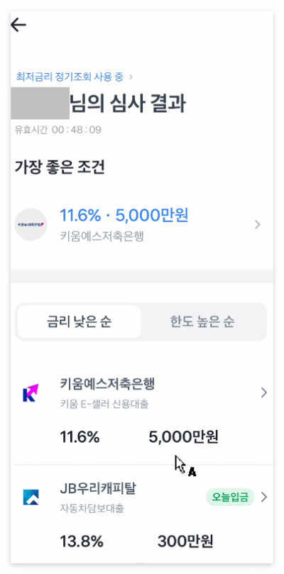 대출 상품의 조건이 달라지기도 하고 제가 입력하는 조건이 달라지기도 하기 때문입니다