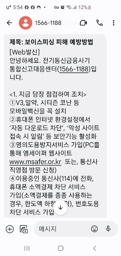 오늘은 제가 보이스피싱 문자를 받았어요